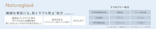 *1:メイクアップ効果による *2:使用感として *3:敏感肌パッチテスト済み。すべての方に皮膚刺激が起こらないというわけではありません。 *4:第三者機関実施試験結果より *5:メイクアップ効果による(個人差があります。) *6:ハッカ葉油(香料) *7:レモン果皮油(香料) *8:ハッカ葉油、レモン果皮油(香料) *9:セルロースパウダー *10:炭酸Ca *11:保湿、皮脂吸着