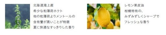 ひんやり感をもたらす希少な和薄荷由来の清涼成分メントールを配合。