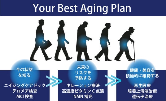 北青山D.CLINIC(東京都港区、院長:阿保義久)は2025年2月18日(火)、独自のエイジング概念「Your Best Aging」をもとに、年齢を重ねる過程を前向きに捉えて未来の自分をより良い状態へ導く包括的エイジングケア『Your Best Aging Plan』の専用ページを新たに公開いたしました。従来から行ってきた再生医療(幹細胞治療)やがん遺伝子治療などの先端的アプローチに加え、「検査(Examination)」「予防(Prevention)」「治療(Care)」の3ステップをさらに戦略的に組み合わせることで、健康寿命の延伸や美容・活力の維持、リスク管理にいたるまで一貫したサポートを提供いたします。