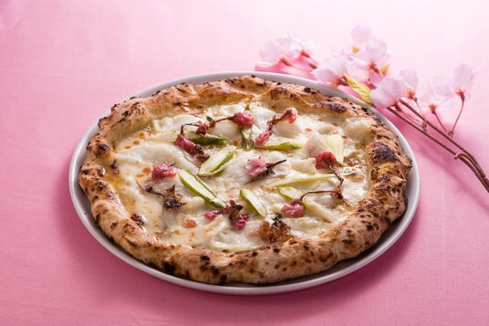 内容:桜の塩漬けを混ぜ込んだチーズベースと、今が旬の鯛の調和が楽しめるピッツァ。ハチミツ入りのゴルゴンゾーラがアクセント。
