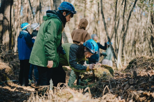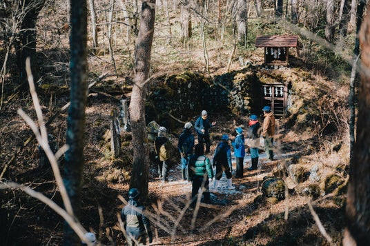 富士山を歩くグループは、富士山1合目付近を散策し、吉田胎内樹型や北口本宮冨士浅間神社など、火山がもたらすダイナミックな自然の姿や富士山信仰の歴史を観察しました。