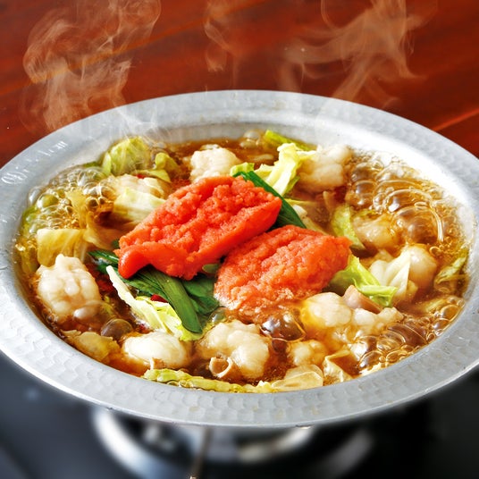 「和牛明太もつ鍋」は上品な辛さの明太子をトッピング。プリプリの「和牛もつ」と明太子の塩味が食欲をそそります。