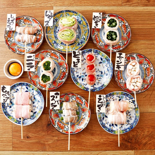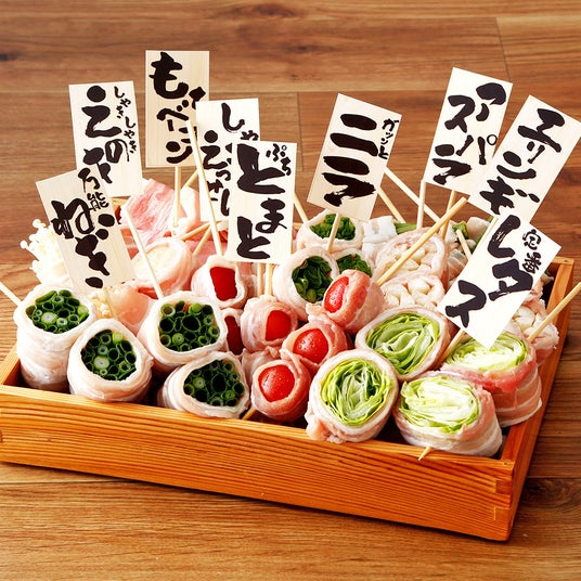 「野菜×豚肉」が織りなす素材のコントラスト。具材の旨みを凝縮したジューシーな「野菜巻き串」を常時9種類ご用意いたします。