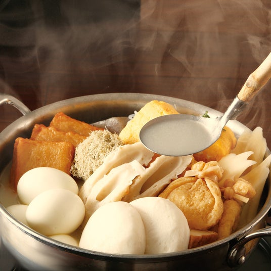 濃厚鶏白湯スープを出汁に使用した、まろやかかつコク深い味わいが素材のうまみを引き立てる絶品おでんです。出汁の旨みがしっかりとしみ込んだ定番の「大根」と、店仕込みの「玉子焼き」は必食。