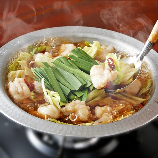厳選した「和牛もつ」だけを使用した絶品もつ鍋。シンプルな醤油ベースの出汁に「もつ」の旨みが溶け出します。