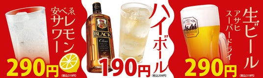 ~神コスパ!190円(税込209円)のハイボールを筆頭に、レモンサワー・生ビールもオールタイム290円(税込319円)!~