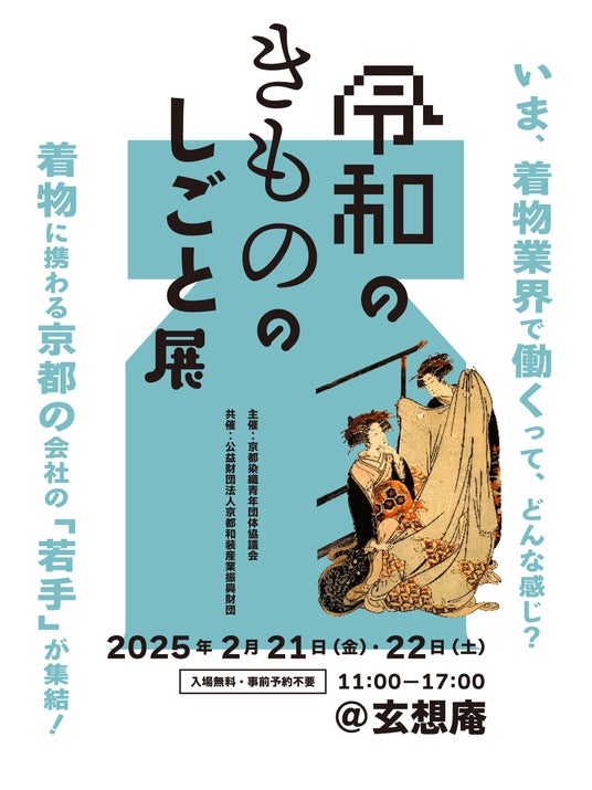 京都の和装産業に携わる青年部からなる京都染織⻘年団体協議会は、2025年2月21日(金)、22日(土)に「令和のきものの仕事展」を開催します。未来の業界の担い手に向けて着物の仕事を伝えるイベントです。