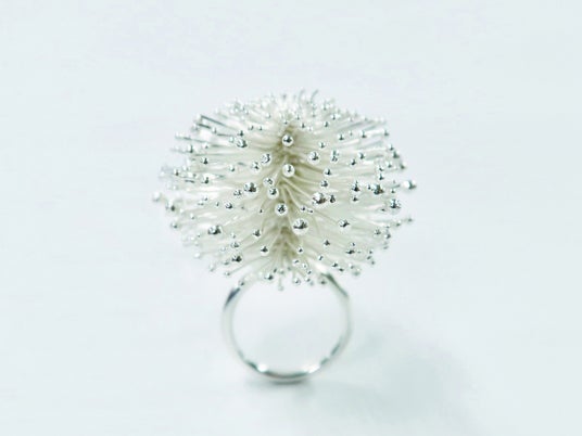アーティスト水谷奈央さんのジュエリーは、主にシルバーを使って制作。細い銀線を使いロウ付けという技法で接合し制作されたジュエリーです。