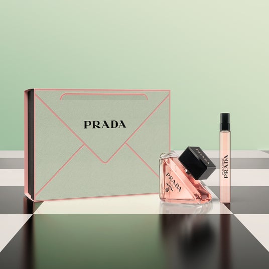 「プラダ エンベロップ」から着想を得た特別なボックスに包まれ、ご自宅用(50mL)とトラベルスプレー (10mL)がセットになったコフレは、鮮やかな明るさとともに深みのある香りが特徴の「プラダ パラドックス オーデパルファム」と、ジャスミンが持つ軽やかで活き活きとしたムードを演出するフローラルムスクの香りをお楽しみいただける「プラダ パラドックス ヴァーチャル フラワー オーデパルファム」の2種類からお選びいただけます。