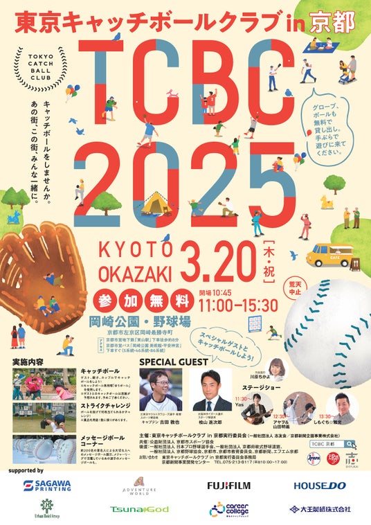 古田敦也さん、桧山進次郎さんを迎え「TCBC2025 東京キャッチボールクラブin京都」を3月20日(祝)に京都・岡崎で開催 ~キャッチボールをしませんか。あの街、この街、みんな一緒に~