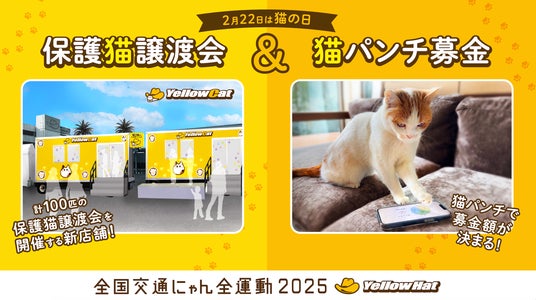 カー用品専門店のイエローハットを全国展開する株式会社イエローハット(代表取締役会長:堀江 康生)は、「猫の日」である2025年2月22日(土)に向け、今年で7年目となる、猫を交通事故から守るための「全国交通にゃん全運動」キャンペーンを実施します。