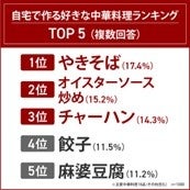 3.自宅で作る好きな中華料理 1位「やきそば」、2位「オイスターソース炒め」