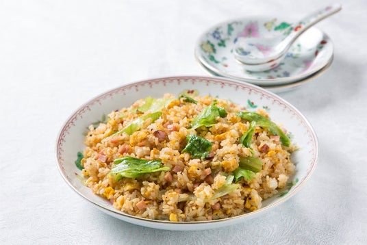 フライパンにサラダ油を熱して卵を入れ、すぐに白飯を加えて卵と混ぜながら炒めた後、オイスターソースとブラックペッパー、レタスとチャーシューを加えて炒め合わせ、仕上げに醬油を鍋肌に回し入れてサッと炒めたら完成です。