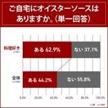 また、自宅にオイスターソースがあると回答した料理好きな人は62.9%で、全体平均である44.2%に対して、約1.4倍という結果でした。好きな調味料ランキングでは16位だったオイスターソースですが、料理好きほど自宅にオイスターソースがある割合が多いという結果から、その魅力を訴求することで、今後さらに食卓に定着していく可能性があります。