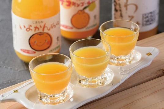 柑橘王国の愛媛県 春は樹上完熟の温州みかんが原料の〈きわみ みかんジュース〉、香り高さはピカイチの〈いよかんジュース〉、デコポンとオレンジのようなタンゴールを搾った〈デコタンゴールジュース〉をご用意しています