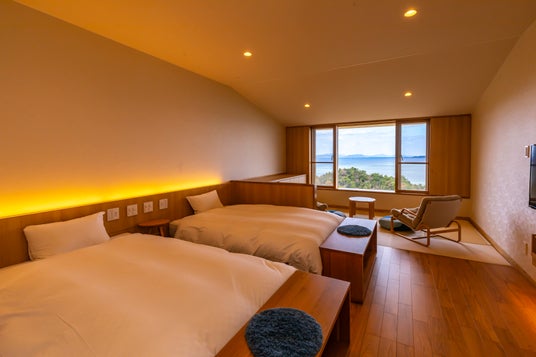 2020年3月、待望の和洋室がオープンしました 木目を基調とした温かみのあるお部屋は、高さを低い設えにしてあり、お部屋のどこからでも瀬戸内の多島美をお楽しみいただけます