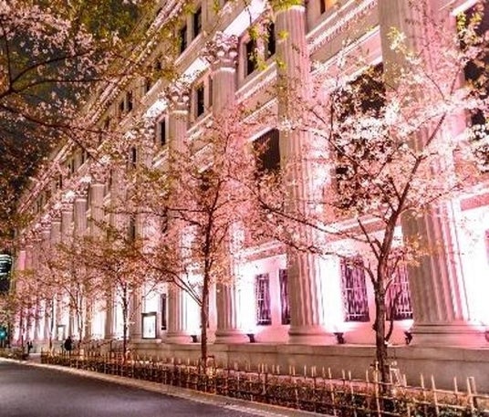 中央通り沿いに並ぶ重要文化財や、大型ビル、日本橋の桜の名所「江戸桜通り」をはじめとした各所で桜色のライトアップを実施。お仕事帰りや夜のご予定の前に、日本橋ならではの夜桜をお楽しみください。