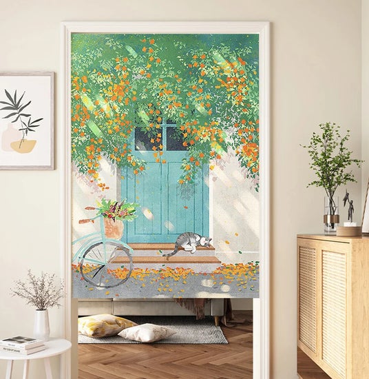 猫柄ドアカーテン(のれん)猫の柄が可愛い全14種類の「ドアカーテン(のれん)」は、付属の伸縮ポールで簡単に設置可能。のれんをドアにつけることで、部屋同士を仕切りながらも風通しを良くし、プライバシーを保ちつつ空間をおしゃれに演出できます。さらに、猫好きにはたまらないデザインでお部屋を癒しの空間に!