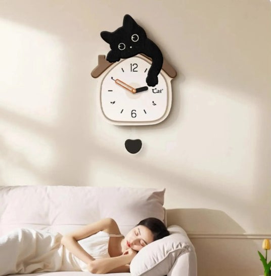 猫デザイン壁掛け時計可愛らしい猫型デザインの壁掛け時計です。静音設計で駆動音が気にならず、リラックスした空間を演出します。インテリアとしても魅力的な一品です。