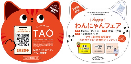 アリババグループ傘下のAlibaba International Digital Commerce Groupが運営する越境ECアプリ「TAO(タオ)」は、TAOアプリ内で好調なペット用品部門に注目し、猫の日である2月22日(にゃんにゃんにゃん)にちなむプロモーションとして、ペット関連グッズを中心とした商品ラインアップを一堂に展示するマルシェ風ブース「HAPPY わんにゃんフェア」を渋谷モディで開催します。本イベントは三連休となる2025年2月22日(土)~2月24日(月・祝)の期間中に実施され、さらにオンラインイベントも並行して2025年2月17日(月)~2月28日(金)まで展開されます。ペット愛好層や流行に敏感な若い世代の皆さま、この機会をお見逃しなく、ぜひご参加ください!