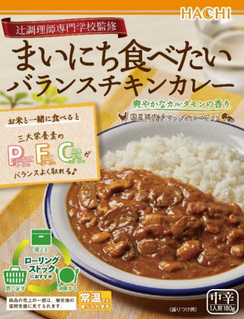 <ハチ食品株式会社×辻調理師専門学校> 辻調監修「まいにち食べたいバランスチキンカレー」3/3発売 三大栄養素をバランスよく。ローリングストックで非常時の備えにも!