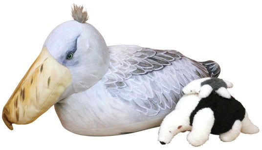 左)ハシビロコウクッション4,620円 右)コアリクイ親子ポーチ3,630円