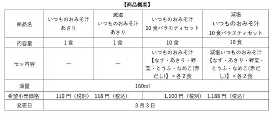 『いつものおみそ汁 あさり』『減塩いつものおみそ汁 あさり』『10食バラエティセット』リニューアル