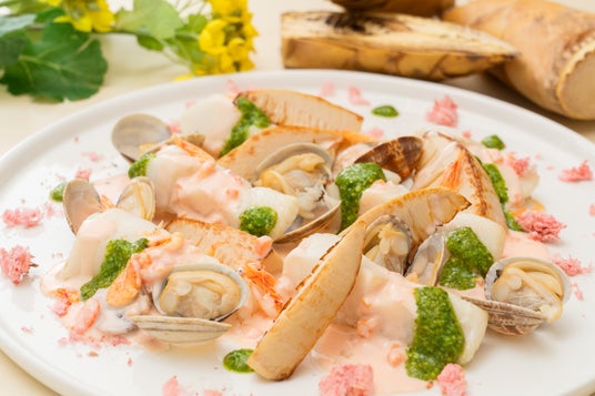白身魚とアサリ 筍のロースト 桜の白ワインクリームソース