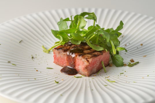 松阪牛グリル 牛蒡のコンフィとフキ味噌のソース