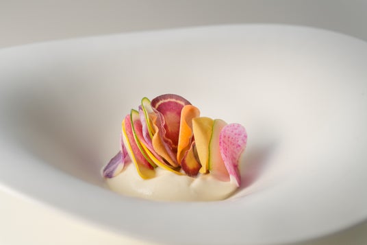 「日本のこだわり 和のひとてま」をテーマに春のコースメニューをご用意。前菜は、冬が終わり雪が溶けた大地から芽吹く春の様子を表現し、これから旬を迎える新玉葱を使ったスープ、野菜出汁をフキ味噌ソースのベースに使用した「松阪牛グリル 牛蒡のコンフィとフキ味噌のソース」をメインに、この時期だけの世界観を演出いたします。