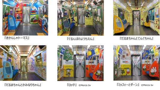 都営地下鉄では、小さなお子様連れのお客様にも安心して気兼ねなく電車を利用していただけるよう、各線において、人気のキャラクターで車内を装飾した「子育て応援スペース」を設置し、運行しています。