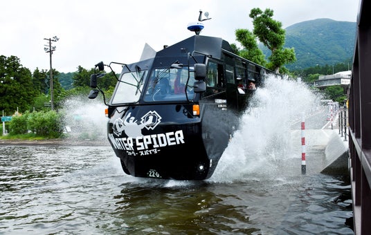 ニンジャバスは、箱根園より水陸両用バスに乗り込み、芦ノ湖へダイブする爽快なアクティビティーです。約15分間の芦ノ湖クルーズでは、芦ノ湖や富士山を含めた周辺の山々をじっくりと楽しめます。