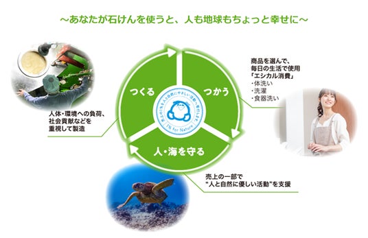 2015年より、シャボン玉石けんの人気商品の売上の一部を“人と自然にやさしい活動”へ寄付しています。当社は「健康な体ときれいな水を守る。」という企業理念のもと、人にも自然にもやさしい製品づくりを行っています。製品づくりはもちろん、健康や環境を守り、次世代にもつなげていくため、当プロジェクトをスタートしました。「シャボン玉UV」も本プロジェクトの対象商品です。