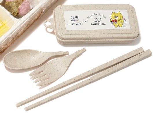 「ノラネコぐんだん ピクニック弁当」をお買い上げいただいたお客様に、一汁旬菜 日本橋だし場×ノラネコぐんだん コラボ限定オリジナルデザインのカトラリーをプレゼントします。洗って何度もお使いいただけるカトラリーセットは、これからのお花見やピクニックの季節に活躍いたします。ここでしか手に入らない特別なカトラリーを使って、だしがきいたお弁当や惣菜を一緒にお楽しみください。