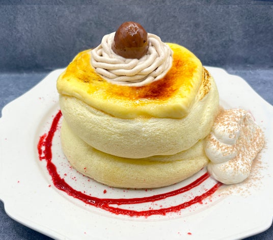 ほうじ茶と渋皮栗のモンブランクリームブリュレのスフレパンケーキ ¥1,400