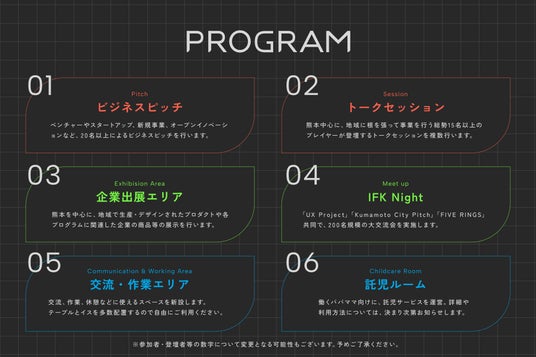 さまざまなプログラムを通して気づきや出会いを提供し、この日から熊本発の新産業・イノベーションを加速させます。
