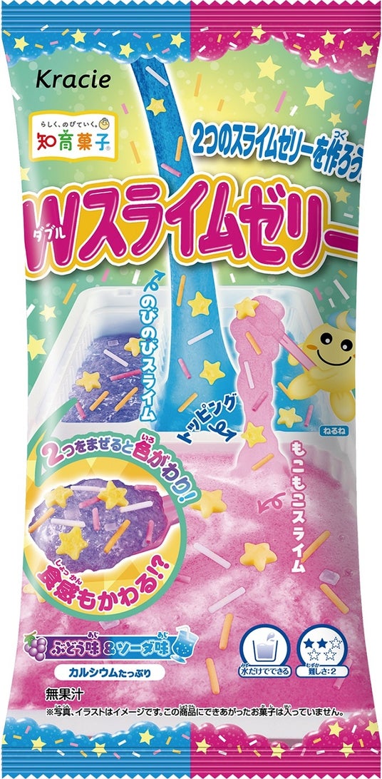「のびのびスライム」「もこもこスライム」2つのスライムが作れるお菓子「Wスライムゼリー」を3月3日から新発売