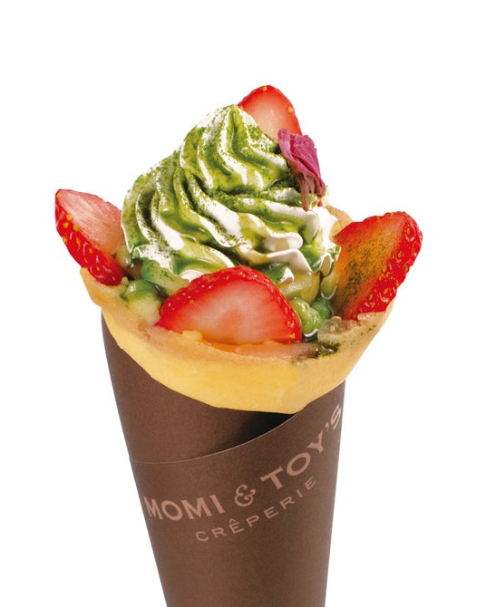 伊豆産桜葉を練り込んださくらあんと、いちご、抹茶ソースを贅沢に合わせたクレープです。さくらあんの風味と抹茶のほろ苦さが、いちごの甘さと絶妙に調和し、春の味わいを楽しめる一品です。
