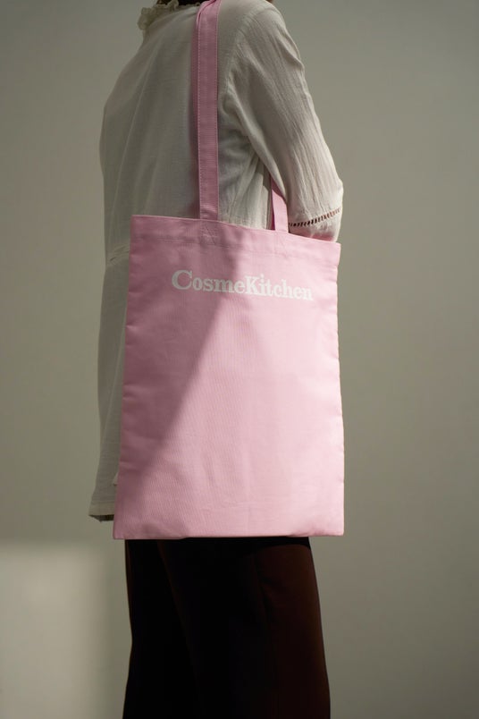 Cosme KitchenオリジナルエコカラートートBAGは生地にオーガニックコットンを100%使用。さらに内ポケットもついていて、デイリーにお使いいただけるエコバッグとなっております。春らしいピンクカラーで心ときめくようなデザインも魅力です。