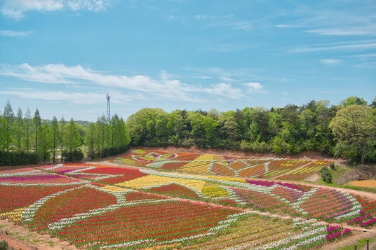 約20万本のチューリップを使った色彩鮮やかな風景を一望できます。今年のデザインをお楽しみに。※写真は過去のデザインです。