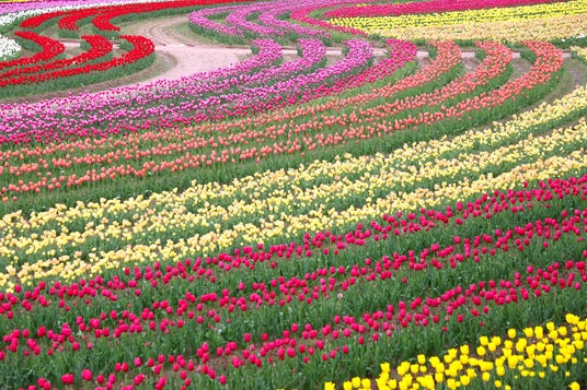 冬を越え、65,000平方メートル もの広大な畑一面に75万球のチューリップが咲き誇ります。毎年異なるデザインで植栽するエリアを変えているので、今年の花畑は今年だけの景色です。何度訪れても楽しめる花絶景をぜひご覧ください。