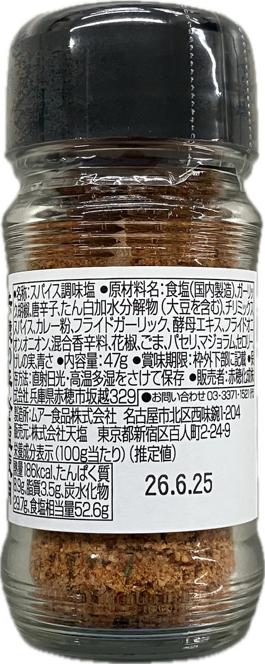 従来のスパイス塩の多くはアミノ酸などのうま味調味料を使用することが一般的ですが、本品は食品添加物を使用せず、食品素材だけで仕上げました。安心してお使いいただけます。