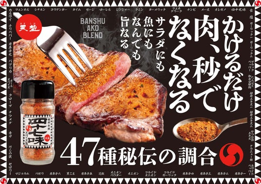 かけるだけで肉が秒でなくなるスパイス塩 ~忠臣蔵の四十七士をイメージした【四十七味】~ 3月1日(土)より全国発売開始
