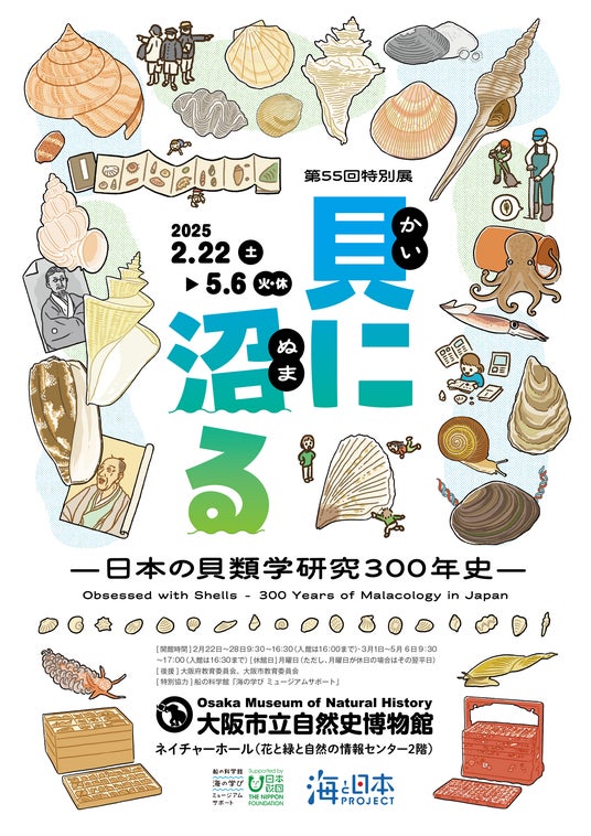 大阪市立自然史博物館では、令和7年2月22日(土)から5月6日(火・休)まで、特別展「貝に沼る -日本の貝類学研究300年史-」を開催します。
