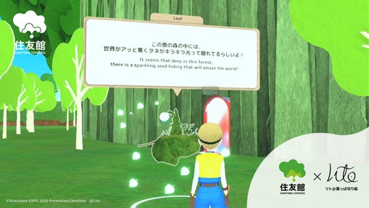 住友館との共創コラボレーションとして展示コンテンツなどを手がける「葉っぱ切り絵アーティスト」のリト氏のアート作品の一部が、バーチャル住友館にも登場します。空間内のあらゆる場所で、来場者のガイド役などとなって来場者をお出迎えします。
