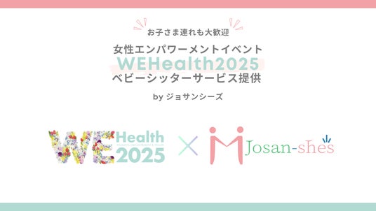 株式会社Josan-she's(本社所在地: 東京都中央区、代表取締役CEO: 渡邊愛子)は、多様な選択肢を通じて、女性のエンパワーメントを実現する株式会社ステルラ(所在地:東京都千代田区、代表取締役:西 史織)が主催する、「WEHealth2025」にて、イベント参加者向けのベビーシッターサービスを特別価格にて提供いたします。お子様連れでも安心してイベントにご参加いただけるよう、ご自宅や会場内でのシッターサービスをご利用いただけます。