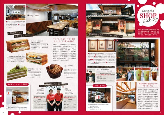 誌面では、メニューや店舗の紹介など、ゴンチャの“今”を知ることができるのはもちろん、歴代期間限定ドリンクの紹介や開発秘話を通じて、ゴンチャの10年を振り返っていただけます。さらに、ゴンチャ愛溢れる全国のクルーのみなさんや著名人の方々がゴンチャの魅力を語るほか、韓国にある最先端店舗のレポートなど、ゴンチャファンにはたまらない情報が盛りだくさんの一冊です。