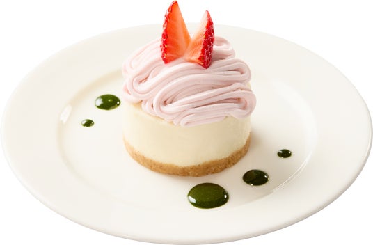 日本の風物詩である“さくら”の香りと新鮮な国産いちごで日本の春の味覚が楽しめる、春季限定の植物由来レアチーズケーキ。