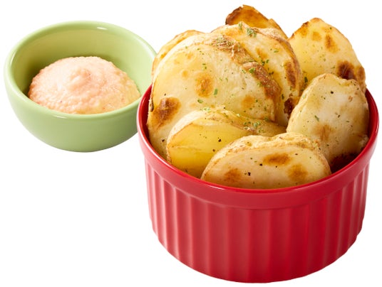 北海道産の男爵芋を皮付きのままスライス。食べ応えのあるこんがりとしたべイクドポテトです。