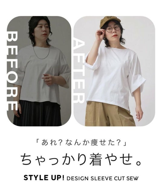 スタイルアップデザインスリーブカットソーの着やせの秘密